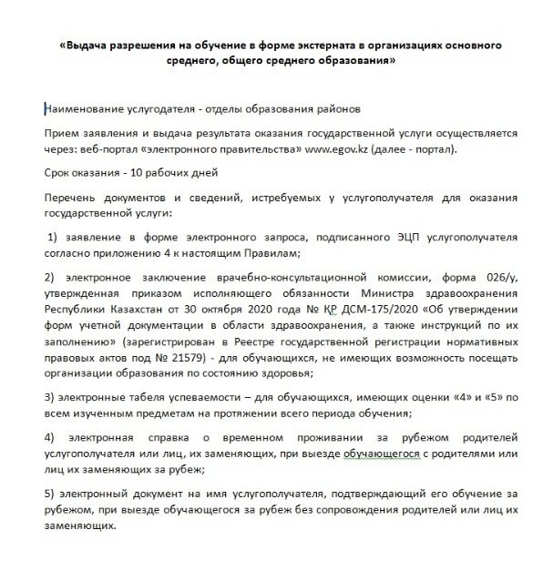 Негізгі орта және жалпы орта білім беру ұйымдарында экстернат оқуға рұқсат беру
