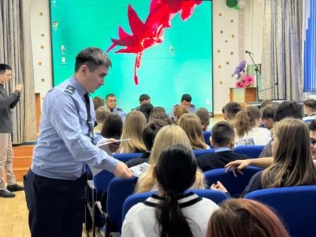 Бүгін КММ «№1 жалпы білім беретін мектепте» 9 және 11 сынып оқушыларымен Қазақстан Республикасы ІІМ академияларына түсу мүмкіндіктері туралы әңгіме жүргізілді. Оқушылар талапкерлерге қойылатын талаптар, оқу үдерісінің ерекшеліктері, болашақ қызметтің перспективалары және ішкі істер органдарының болашақ қызметкері иеленуі тиіс жеке қасиеттердің маңыздылығы туралы мәлімет алды.